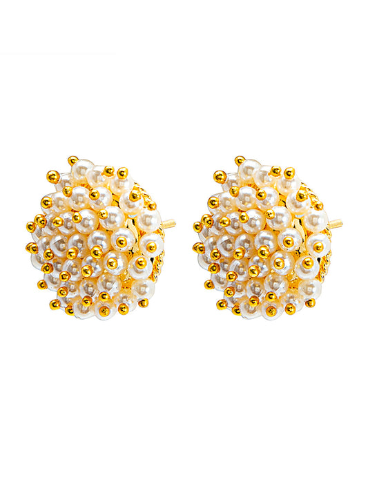 Shining Jewel Traditional Gold Pearl Stud Earrings for Wo...