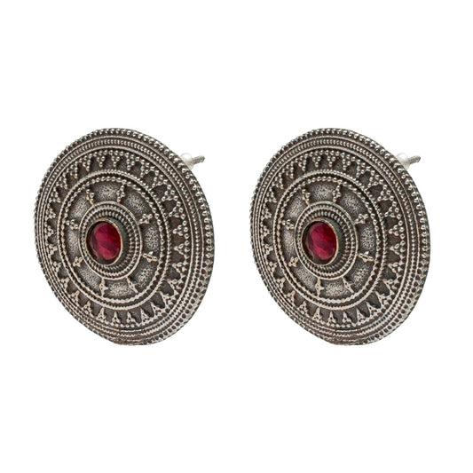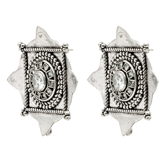Shining Jewel Antique Silver Stylish Oxidized Round Stud ...