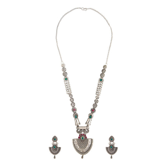 Shining Jewel Traditional Antique Silver Plated Temple Je...