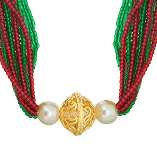Handcrafted Mala Necklace in Maroon & Green Beads (SJ...