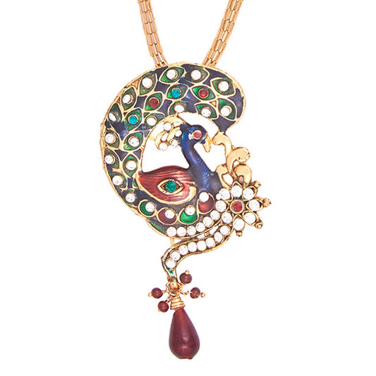 Shining Jewel Gold Plated Round Flower Design Pendant Nec...