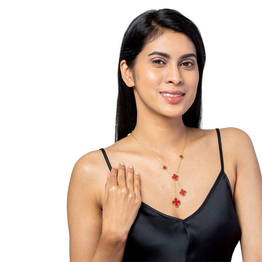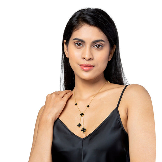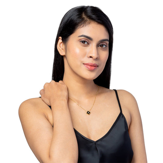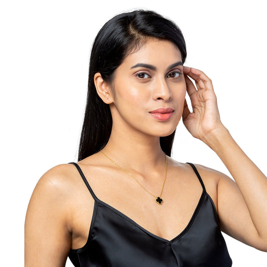 Moon Dust Gold Plated American Diamond Clover Pendant For...