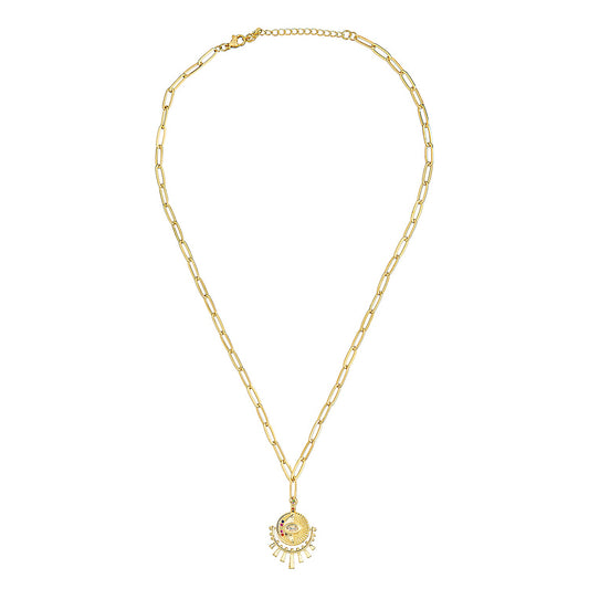 Gold Plated Plated CZ Studded American Diamond Sun Pendan...