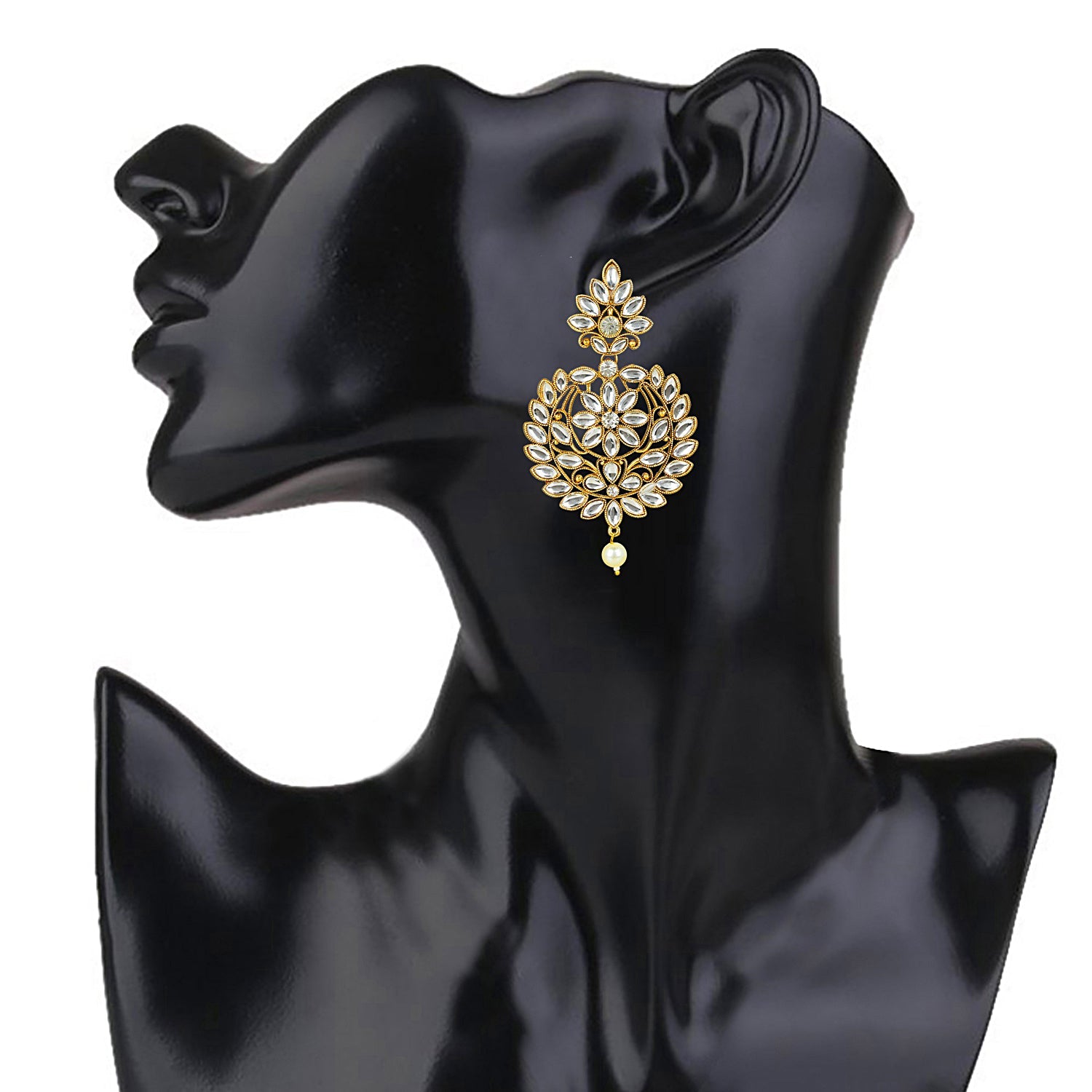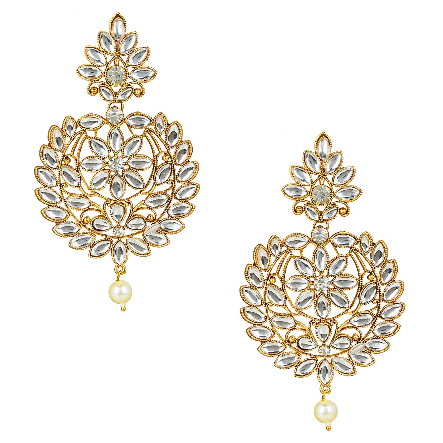 - Gold Plated Designer Ethnic Chand Bali Drop Chandelier Earrings With CZ, LCT Crystals,Kundan, Polki & Pearls for Women