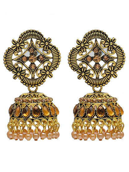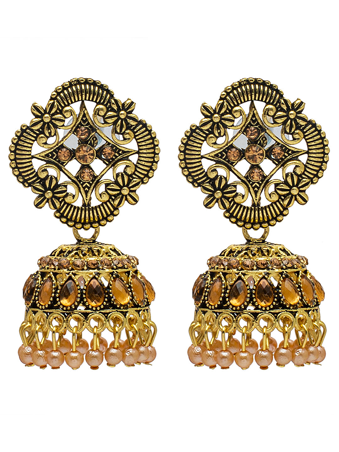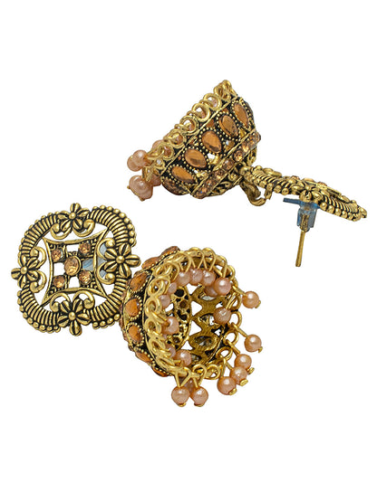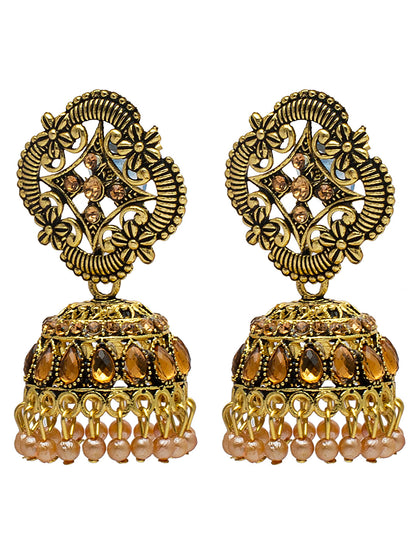 - Traditional Antique Gold Plated LCT, CZ, Pearls Design Ethnic Jhumki Earrings for Women & Girls.