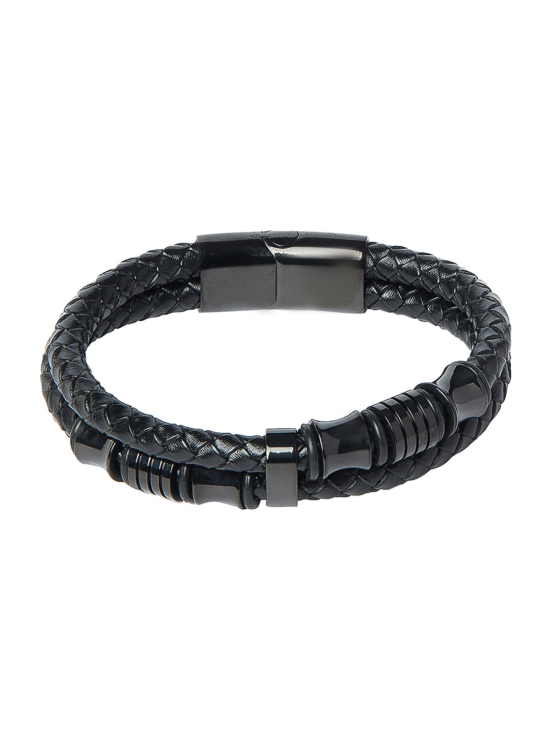 Braided Designer Stainless Steel and Leather Bracelet for Men, Boys Black (SJ_3347_BK)