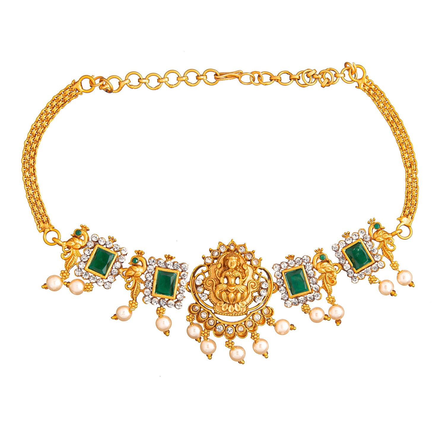 - Traditional Indian Antique Gold Plated Jewellery Chocker Necklace Jewellery Set With Pearls Hanging