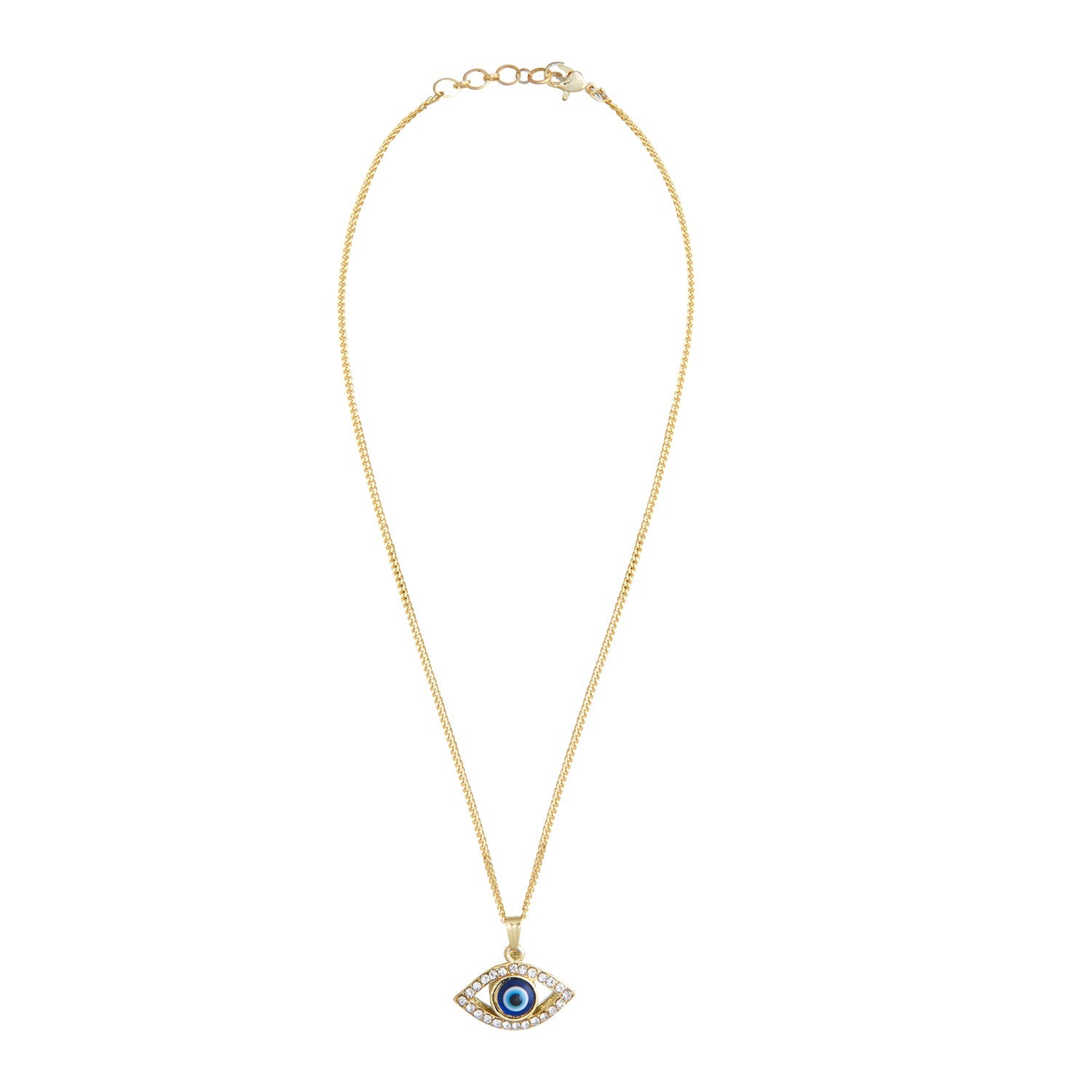 Gold Plated Evil Eye Pendant with Chain & Crystals (SJ_2195)