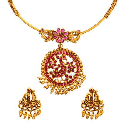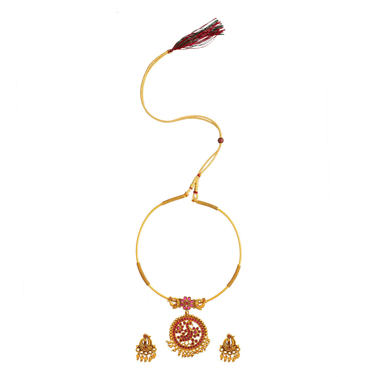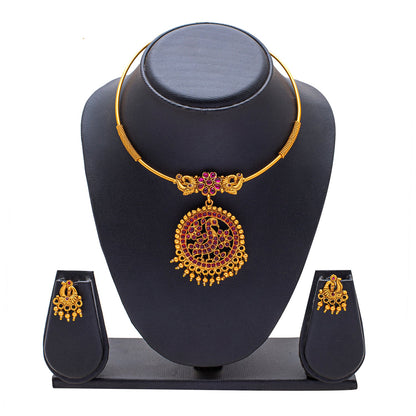Shining Jewel Gold Plated Traditional Pipe Necklace with matching earring for Girls & Women (SJN_128_M)