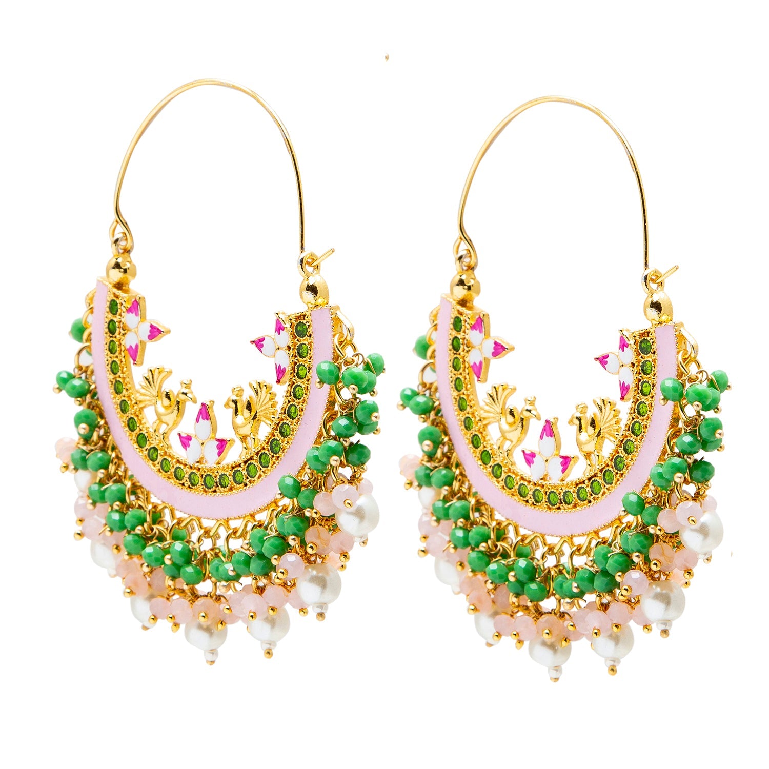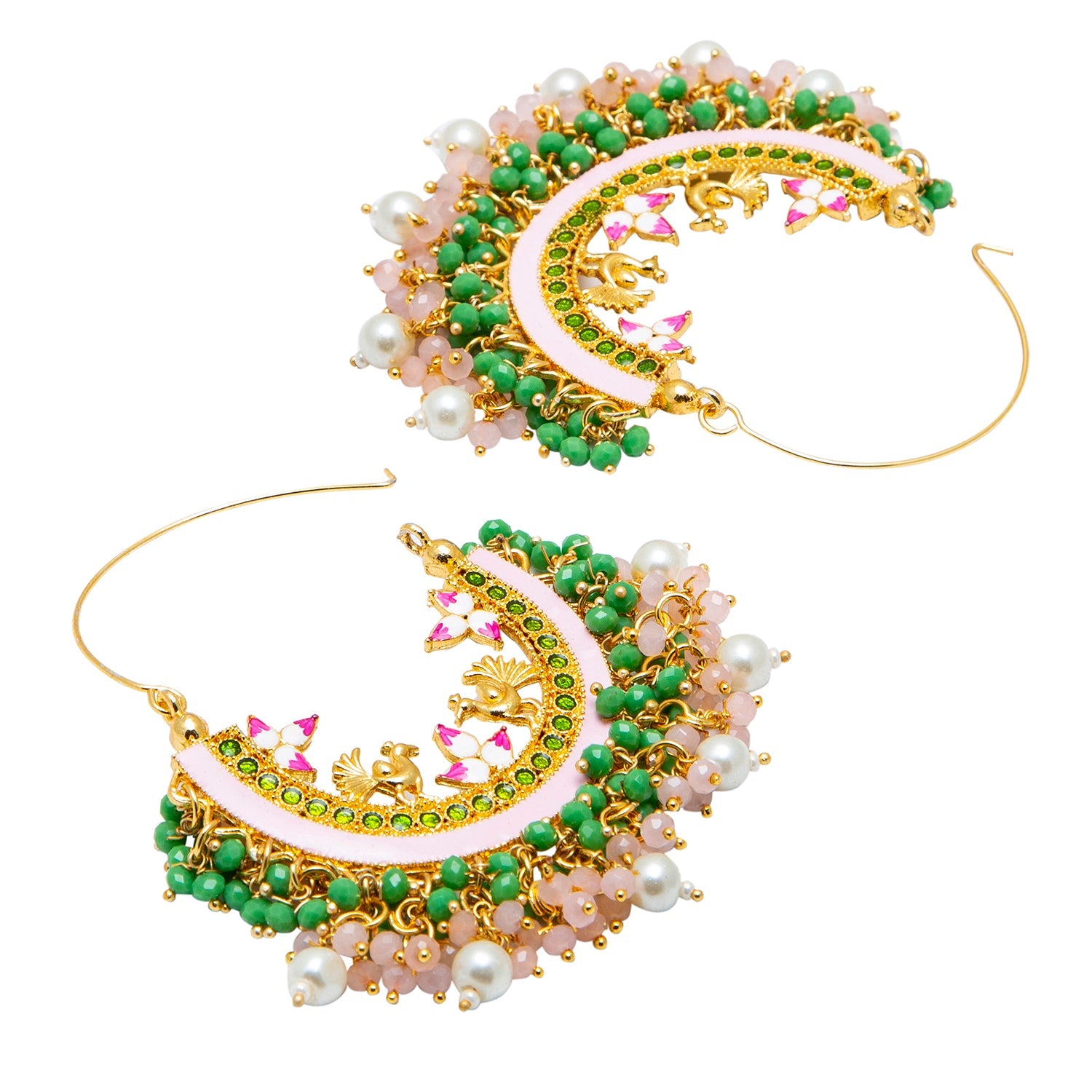 Shining Jewel Handcrafted Gold Plated Traditional Ethnic Meenakari Kundan Chandbali Earrings Women (SJ_1904_PG)