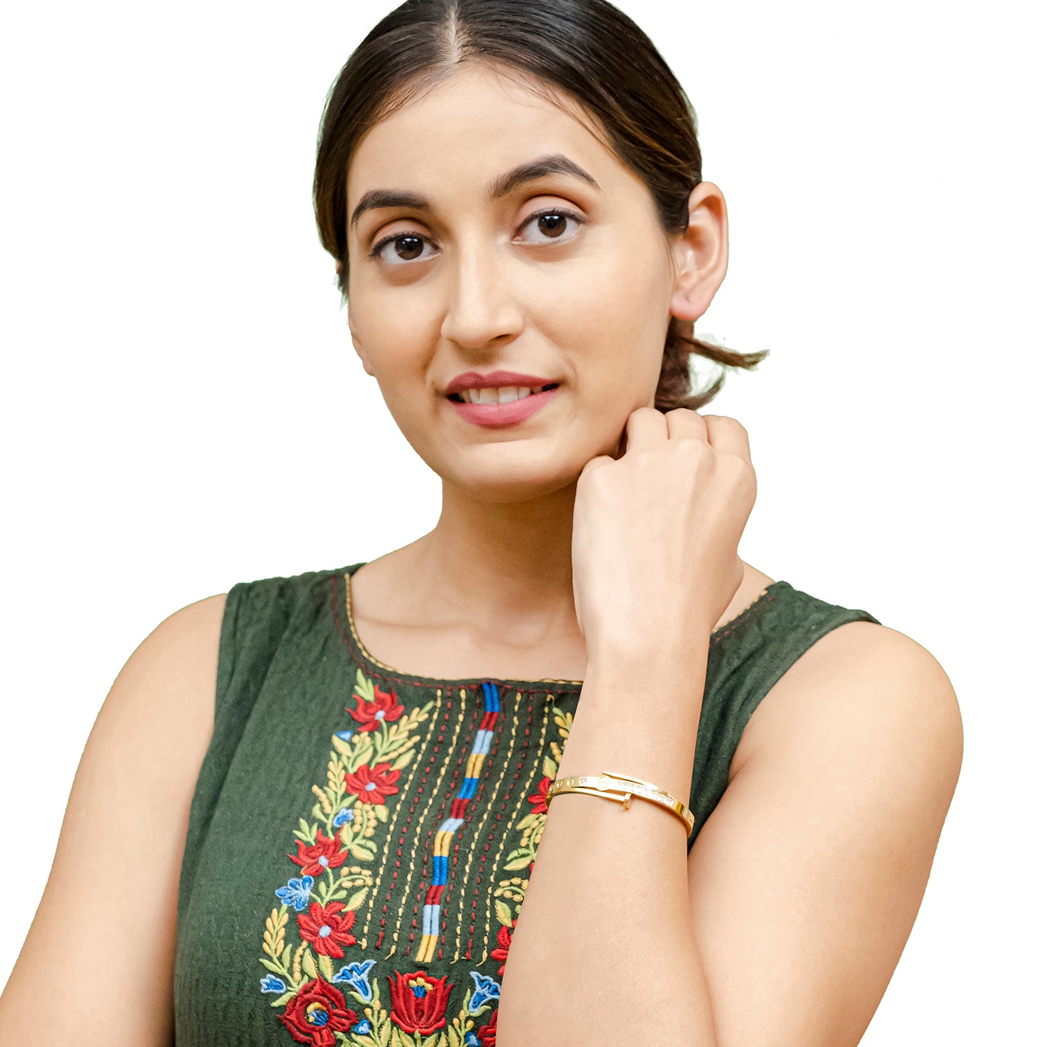 MOONDUST Gold Plated CZ and Crystal Hammer Neil Studded Western Style Freesize Bracelet Bangle for Women