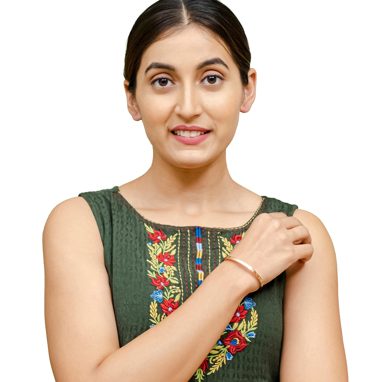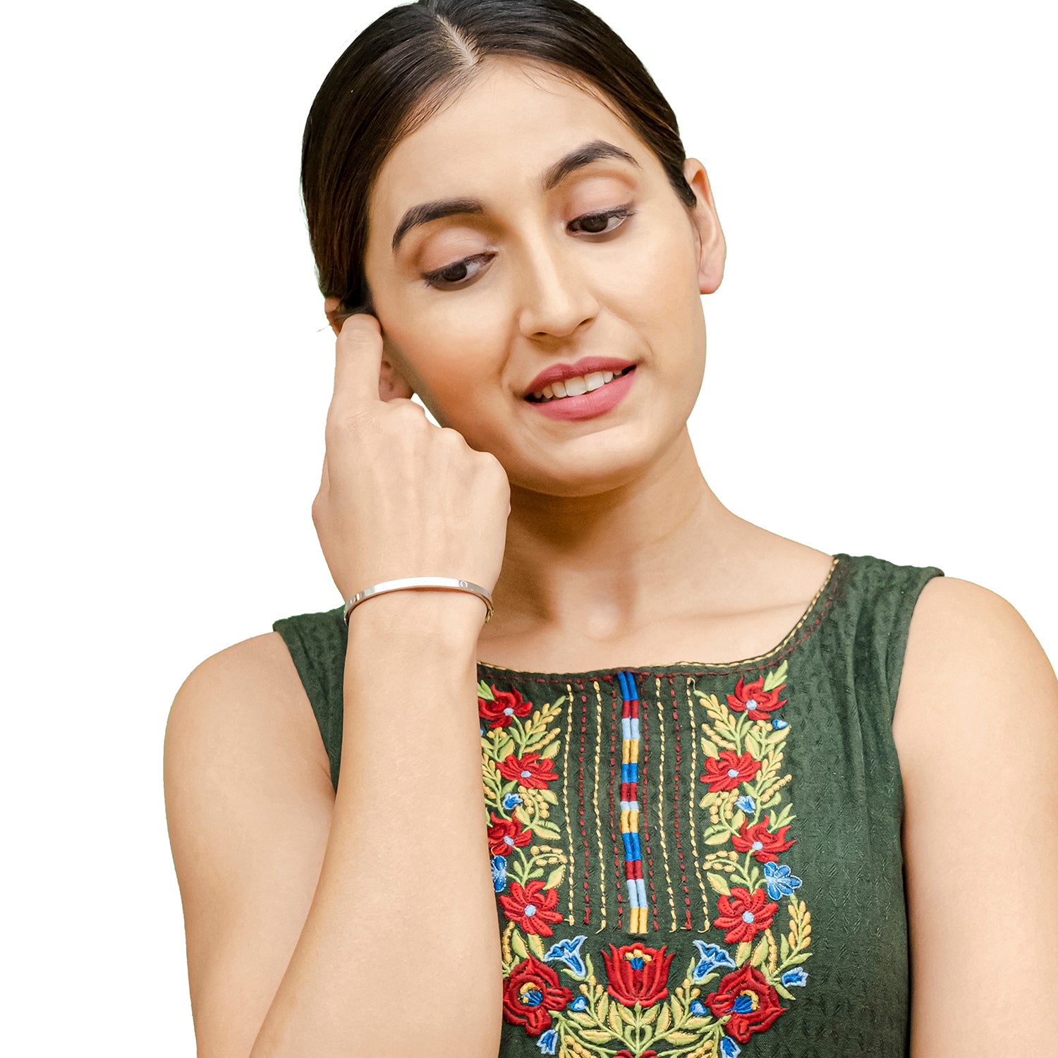 - Hinged closure ensures bracelet stays comfortably in place while allowing easy removal when desired.