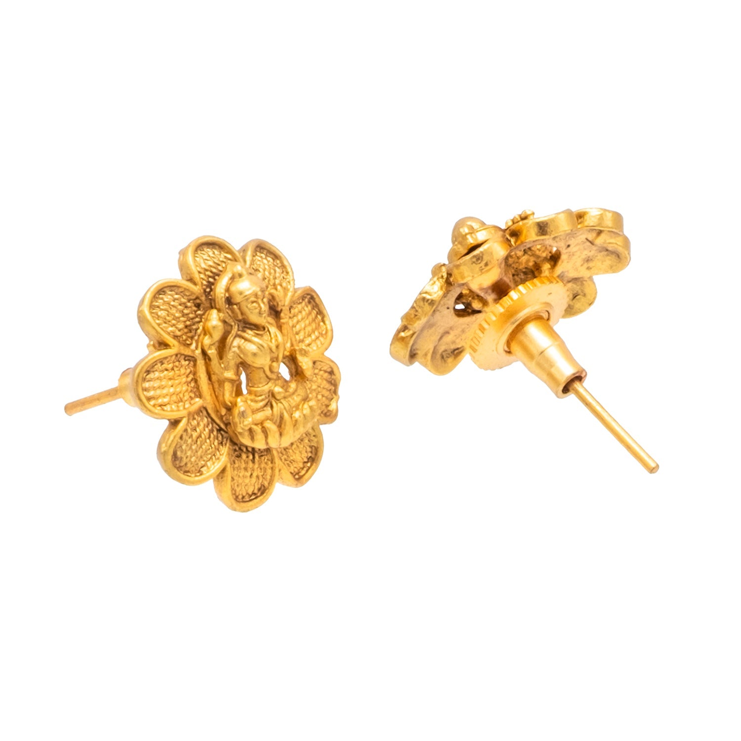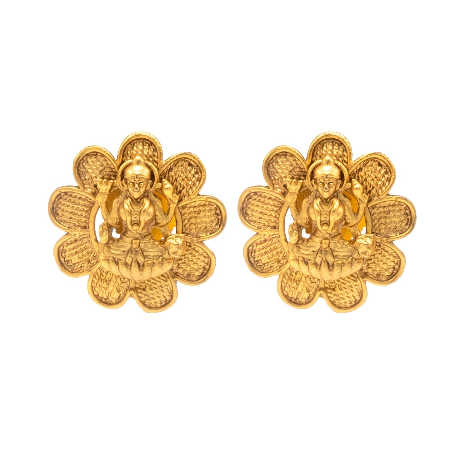 "South Indian Traditional Design:This beautifully crafted jewelry set features intricate details inspired by ancient temple designs, showcasing the goddess Lakshmi—the symbol of prosperity and wealth.