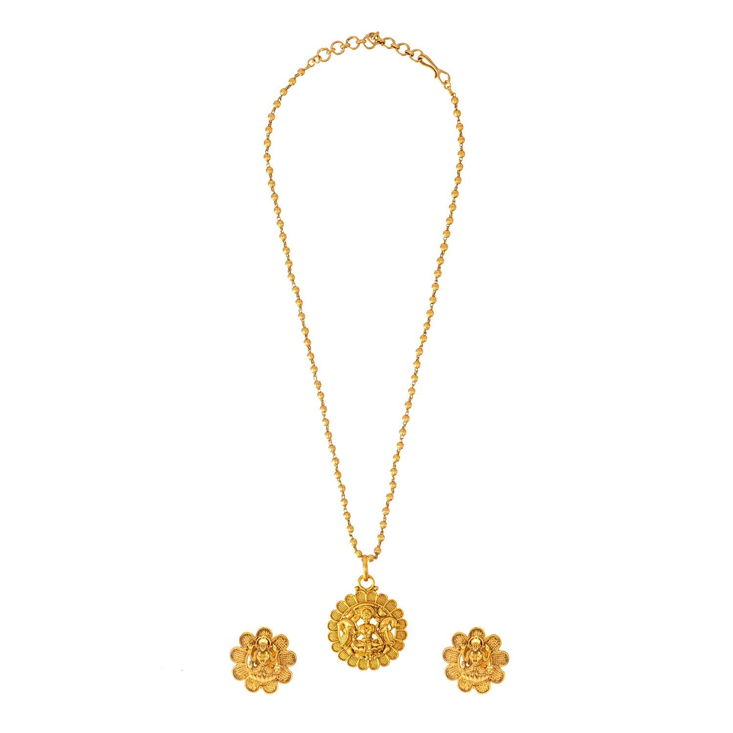 Shining Jewel - by Shivansh Antique Matte Gold Plated Temple Jewellery Inspired Wedding Bridal Laxmi Pendant Necklace Jewellery Set for Women (SJN_307_L1)