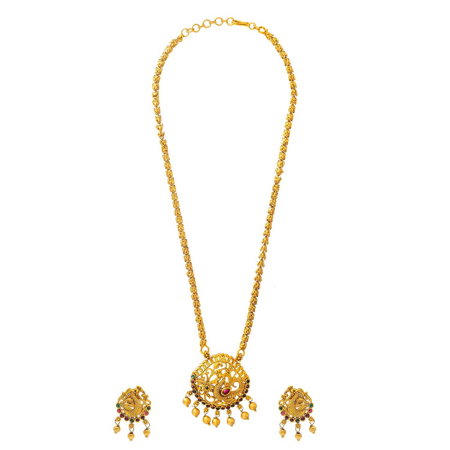 Shining Jewel by Shivansh Gold-Plated Temple Kundan Pearl Peacock Design inspired Wedding Pendant with Matching Earrings Set for Women (SJN_320_D1)