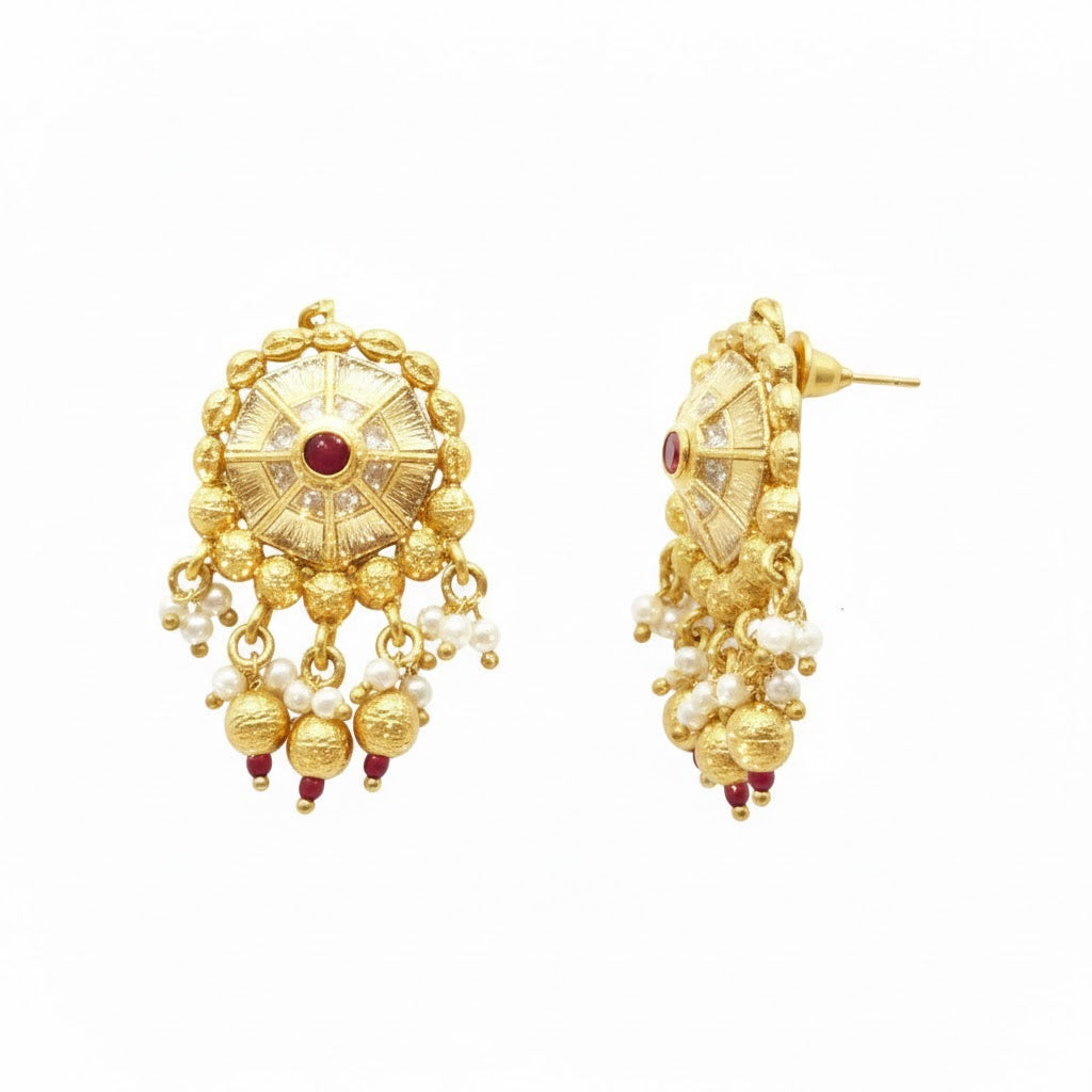 The centerpiece pendant showcases intricate Kundan work with floral motifs and hanging beads