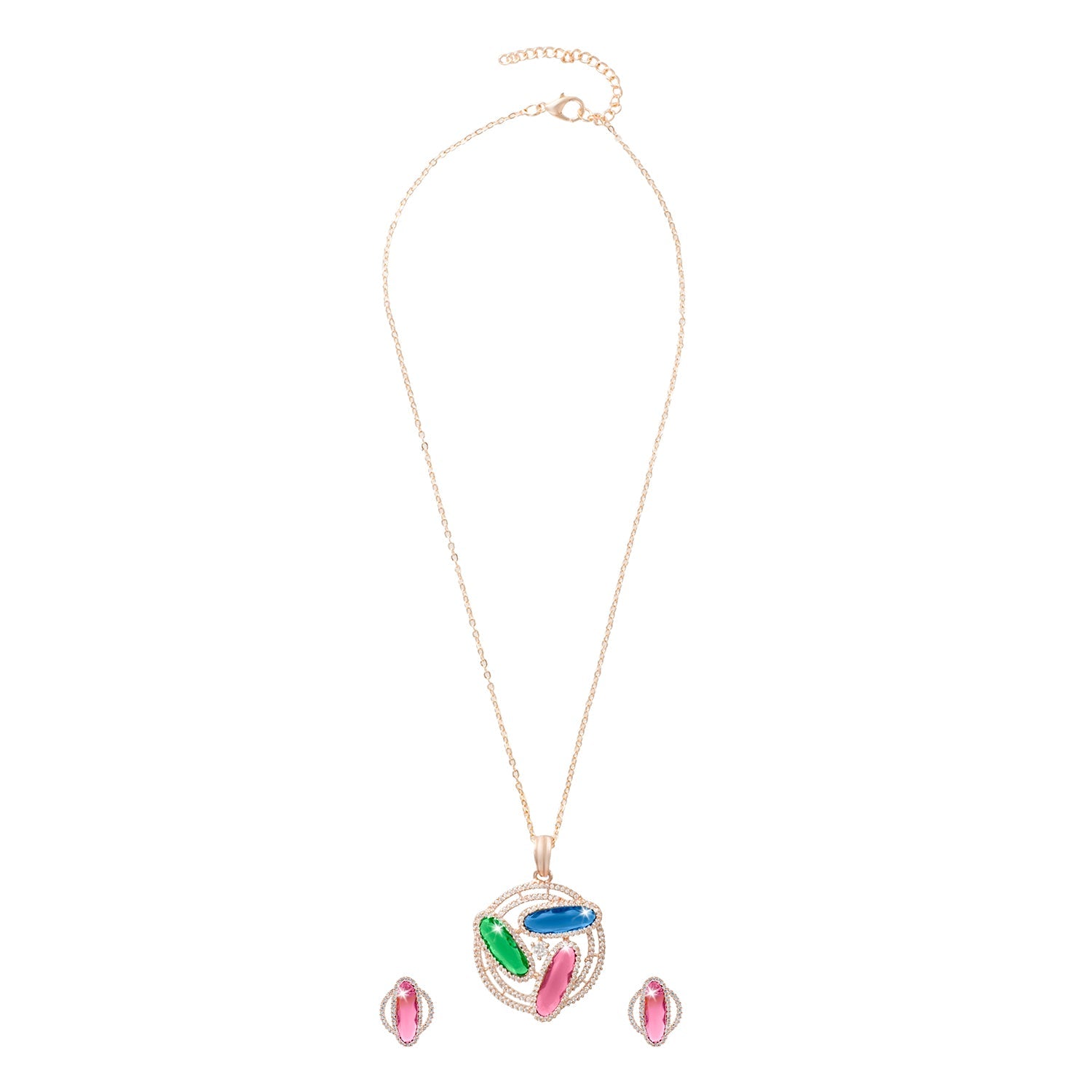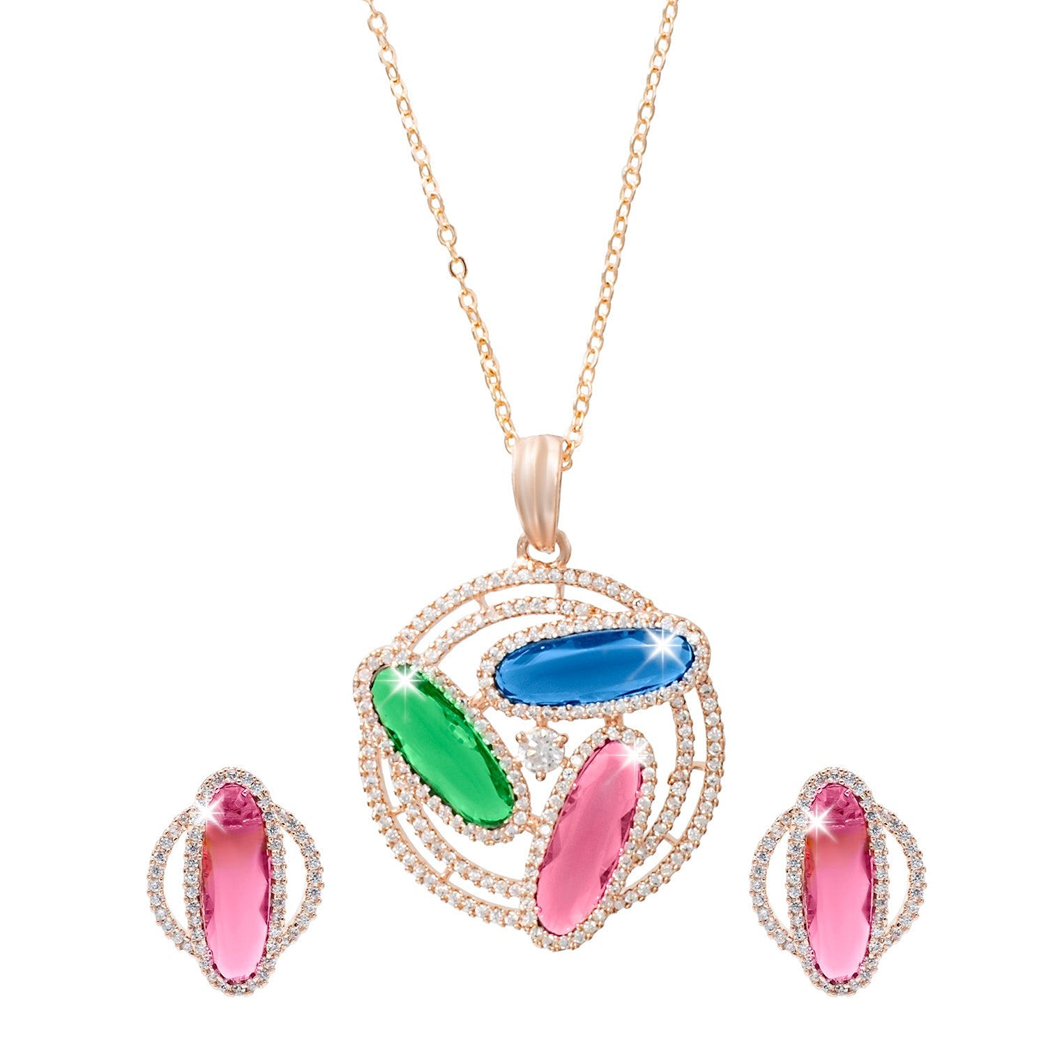Shining Jewel by Shivansh Western Elegant Rose Gold-Plated CZ Stone & Crystals & AD with Maching Dailywear Partywear Earring Pendant Set for Women (SJN_310_RG_MT)