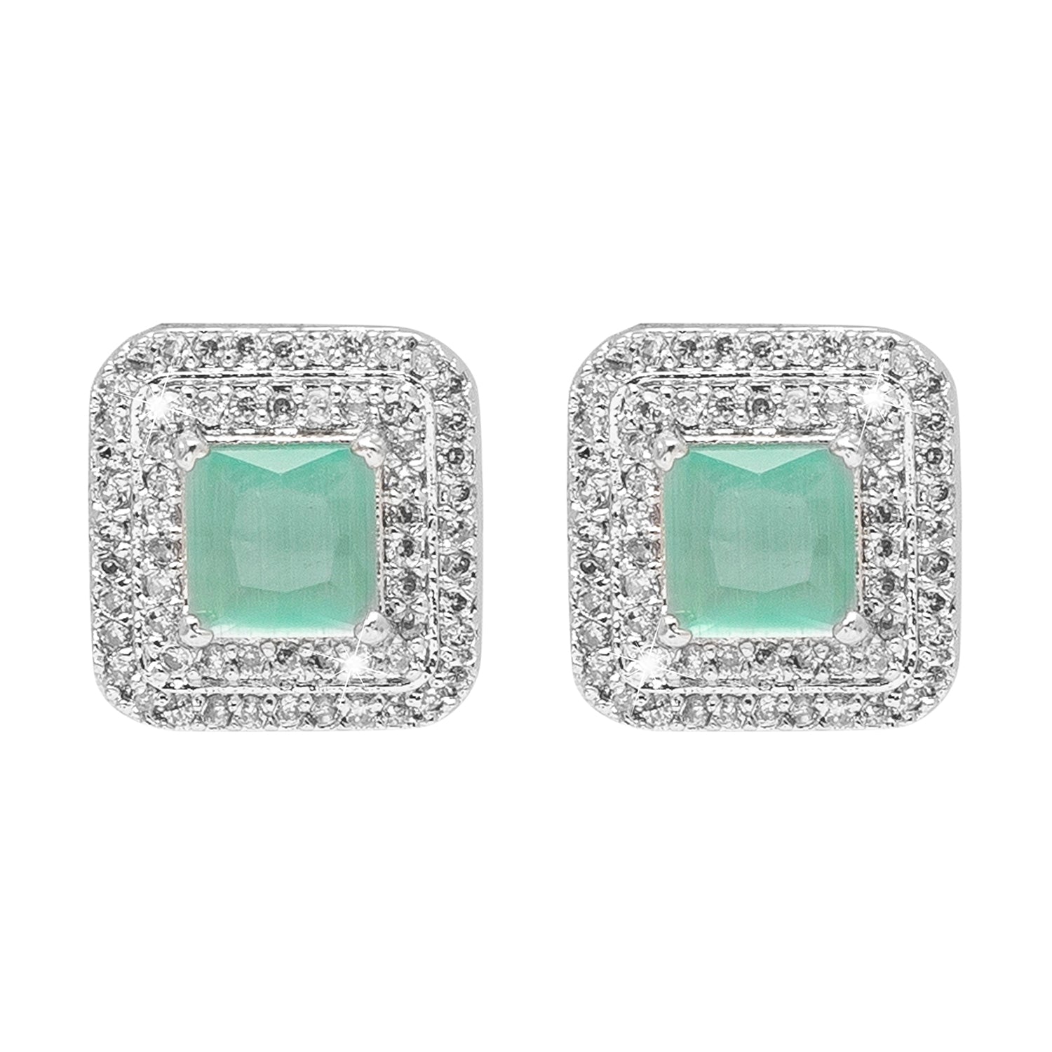 - Mint Green Colored Center stone Stud Earring With High quality American Diamonds in Silver Plating