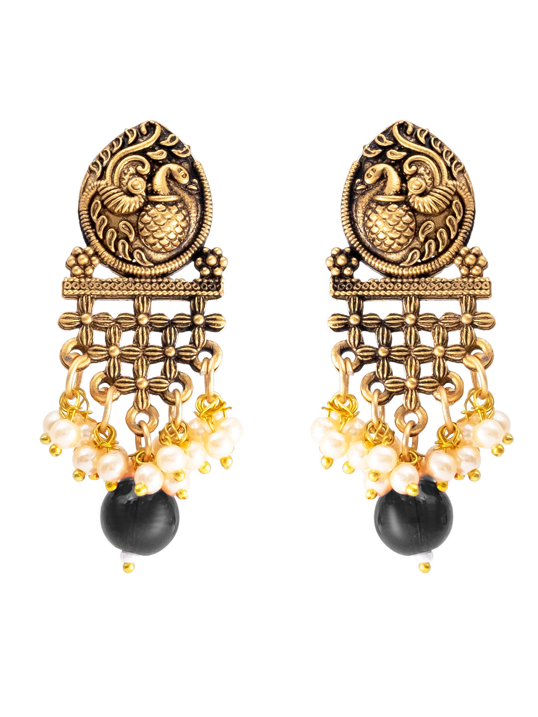 - Matte Antique Gold Plated Peacock Design Pendant with matching Earring Adjustable Dori Necklace Set For Women jewellery is among the most artful of all jewellery types and plays an essential role in the cultural heritage of India.
