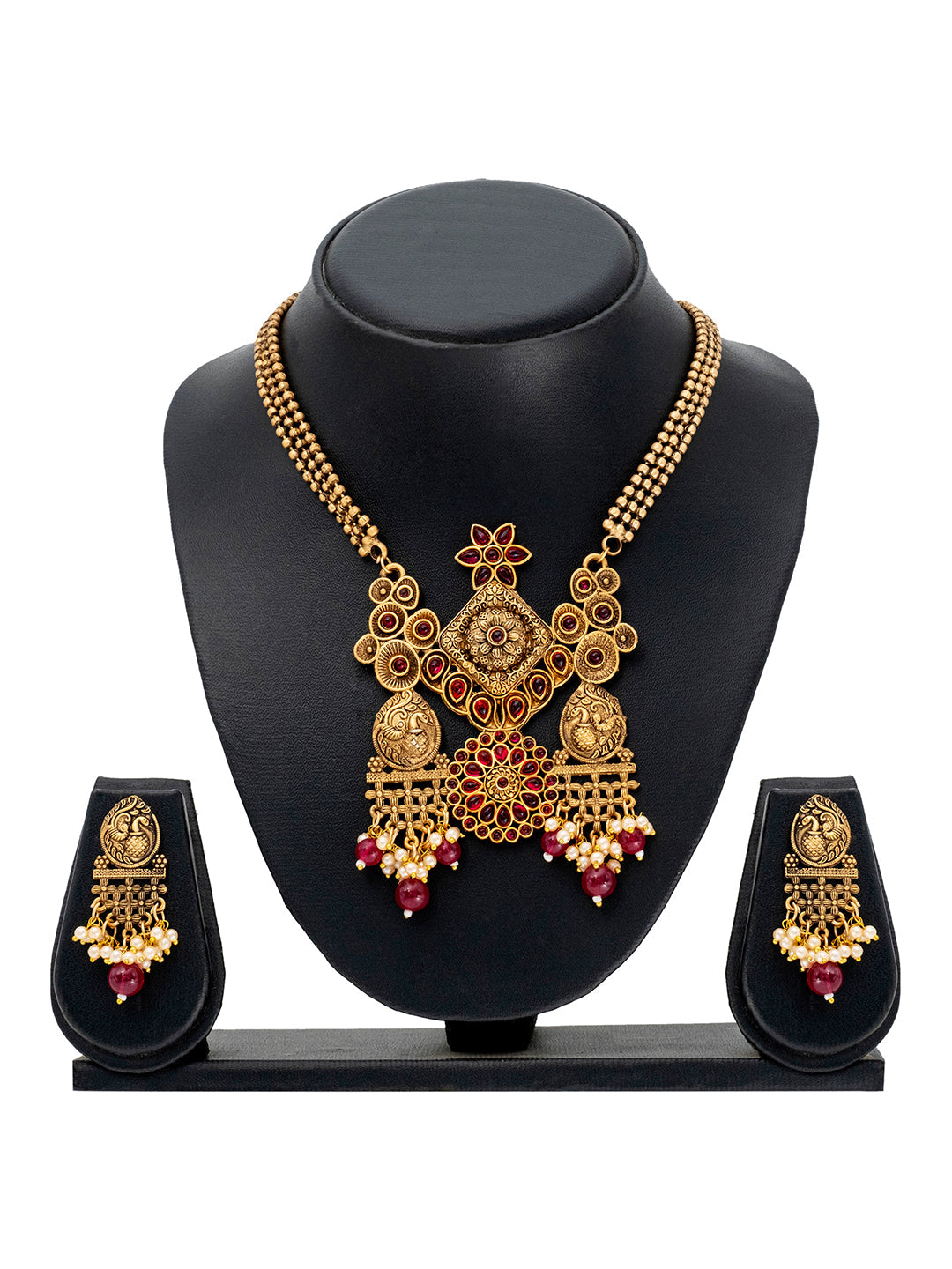 - Color - Gold Maroon || Necklace Length - 18''|| Jhumka Earrings Length - 5 Cm || Pendant Length - 3''