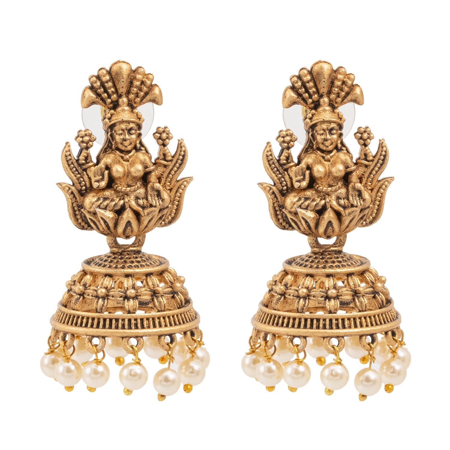 - Intricate Handcrafted Sarswati Laxmi Temple Jhumka Design All Over Classic, Evergreen And Long Lasting Design