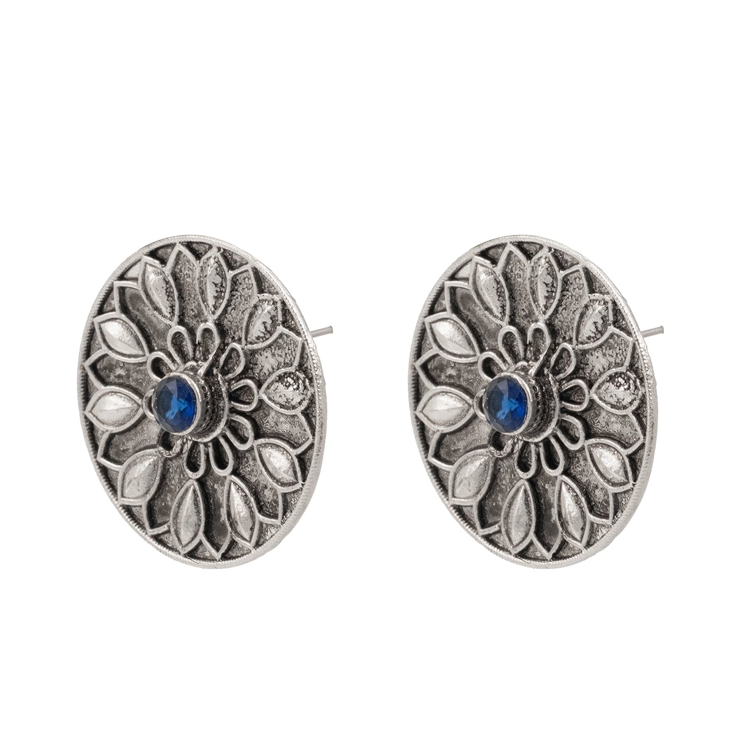 - Matte Silver Oxidized Medium sized Studded Earring for women