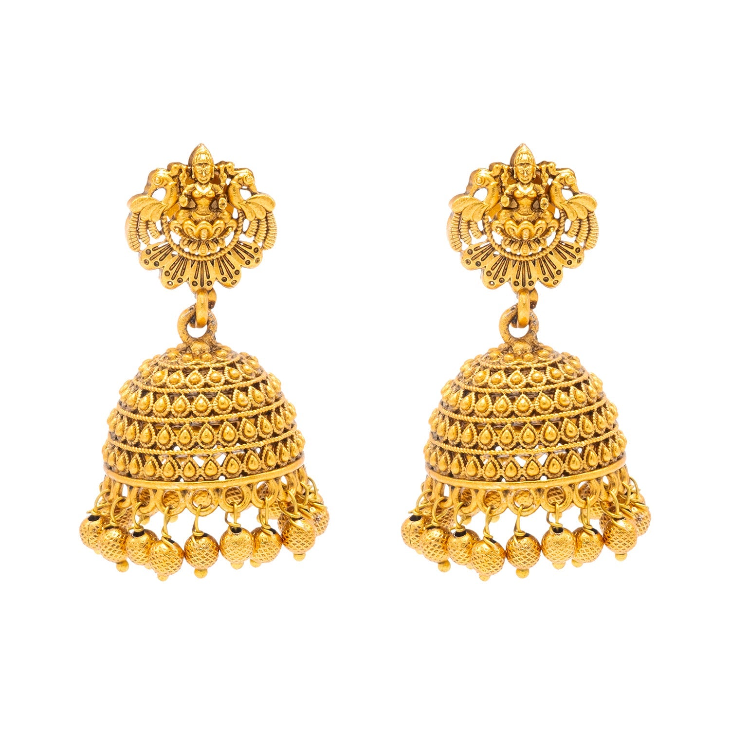 - Handcrafted Design: South Indian Gold Plated Elegant and traditional Laxmi design with Flower etc, featuring intricate craftsmanship for a timeless bridal look Jhumka Earring.