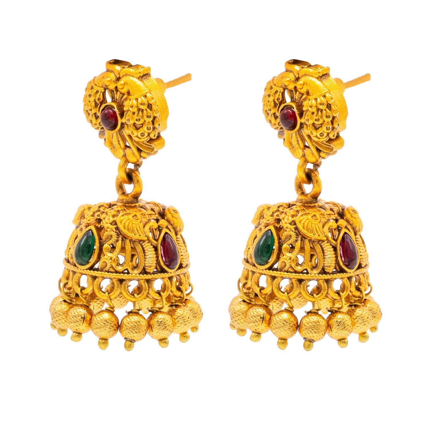 - Handcrafted Design: South Indian Gold Plated Elegant and traditional Laxmi design with Flower etc, featuring intricate craftsmanship for a timeless bridal look Jhumka Earring.