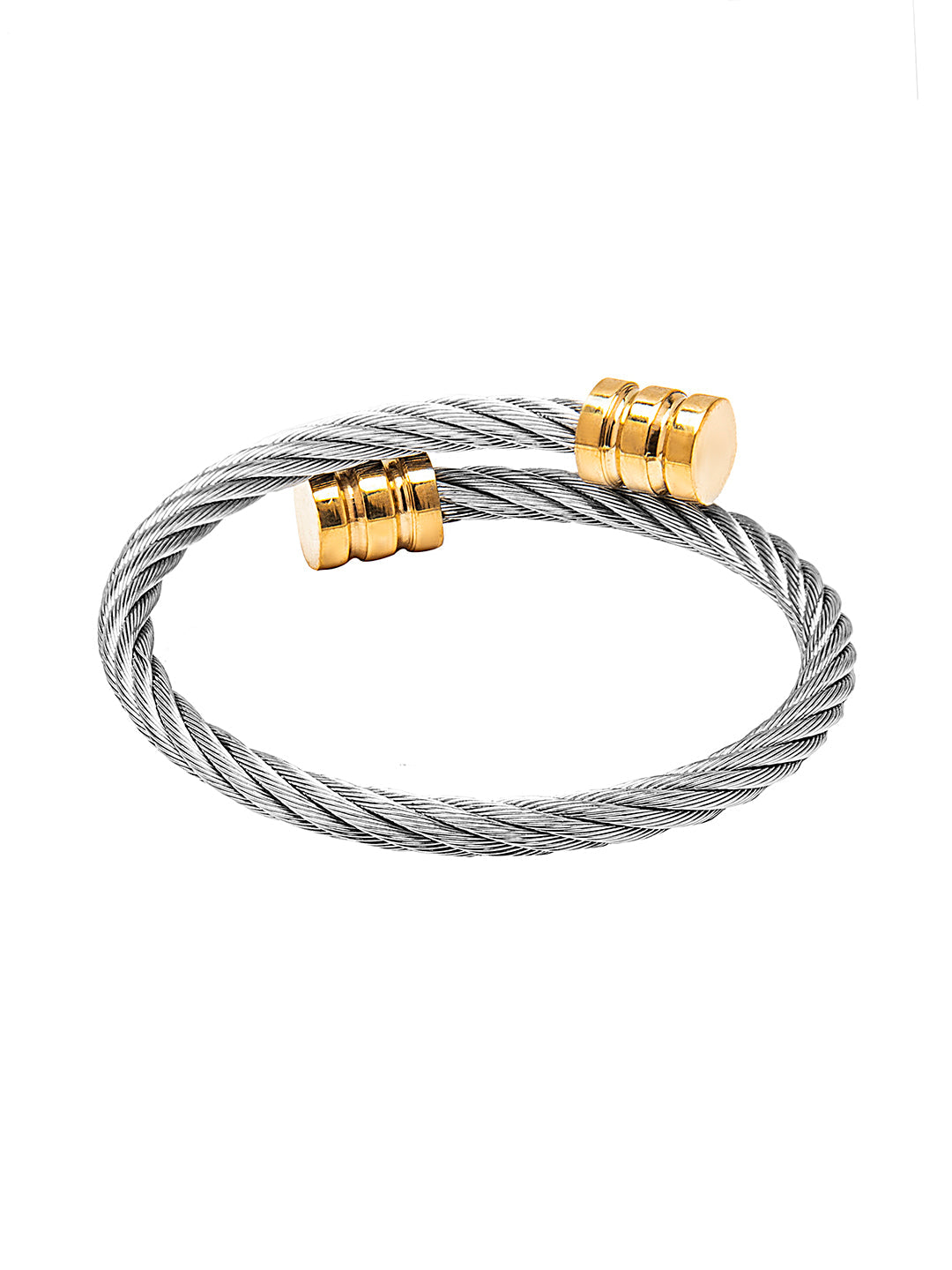- 7mm Designer Elegant Gold and Silver Two Tone Adjustable Kada Bangle for Men & Women