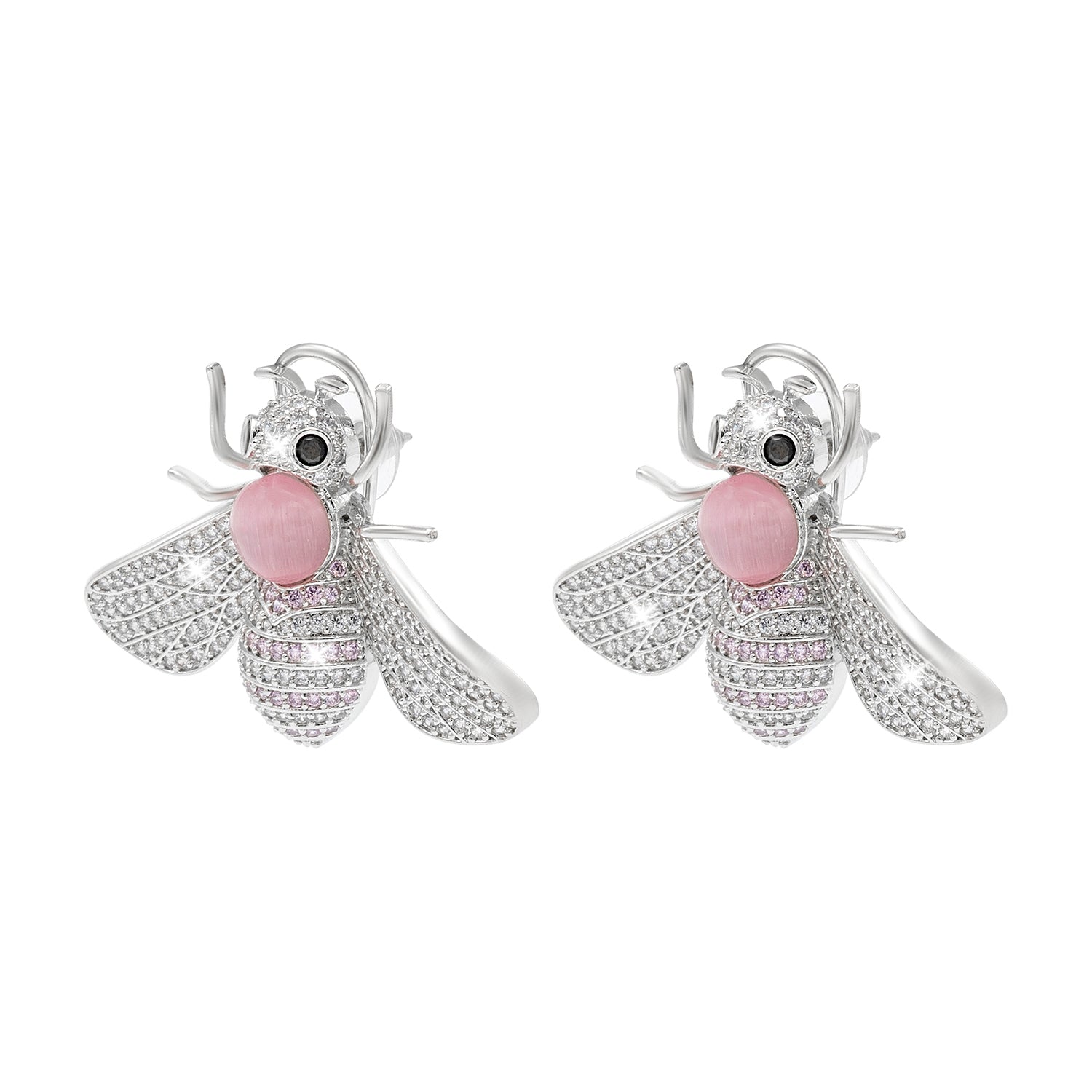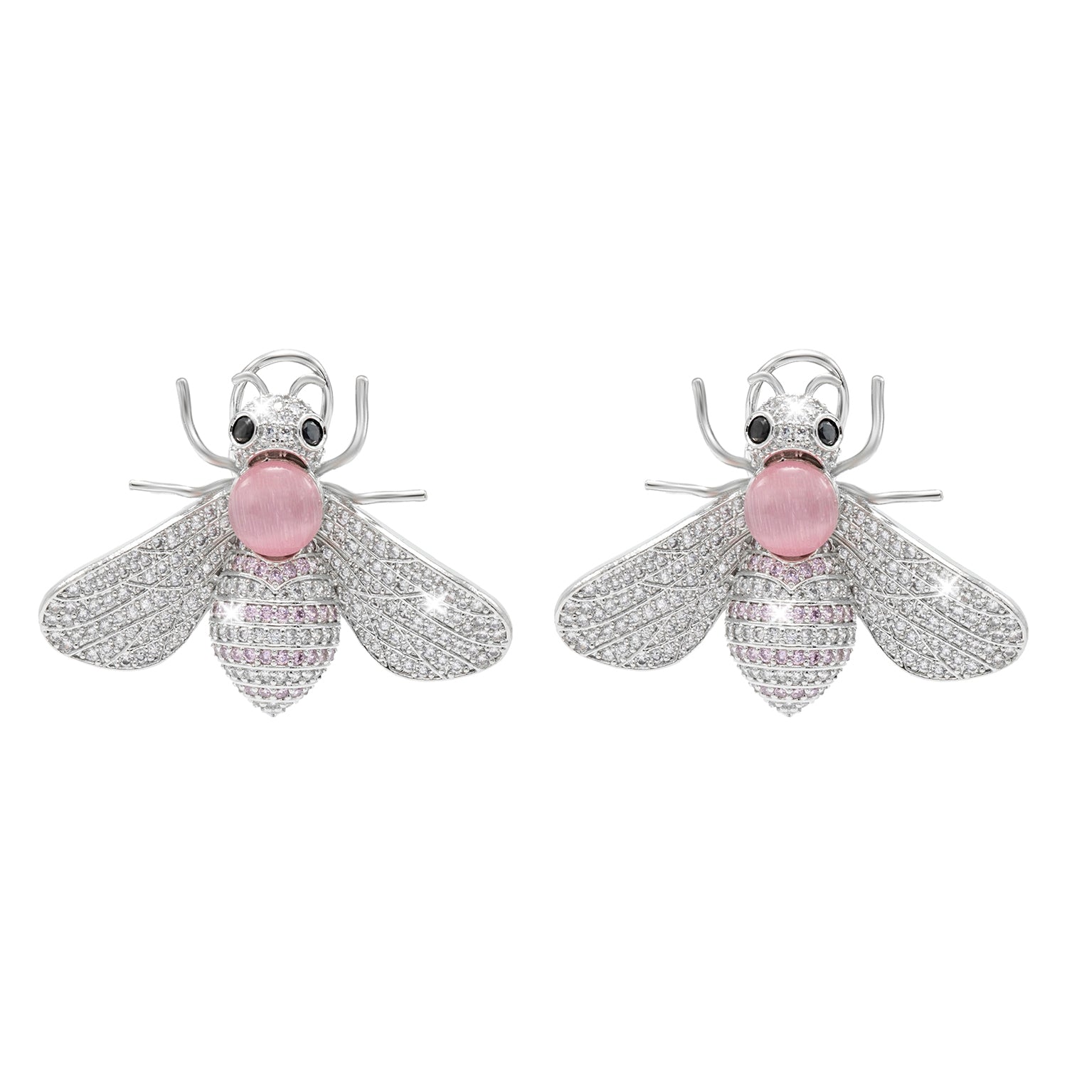 Western Design, CZ, Zirconia, Crystals, Pearls Rhodium Silver Plated Large Size Honey Bee Mosquito Bug Earrings for Women - (SJE_307_S_P)