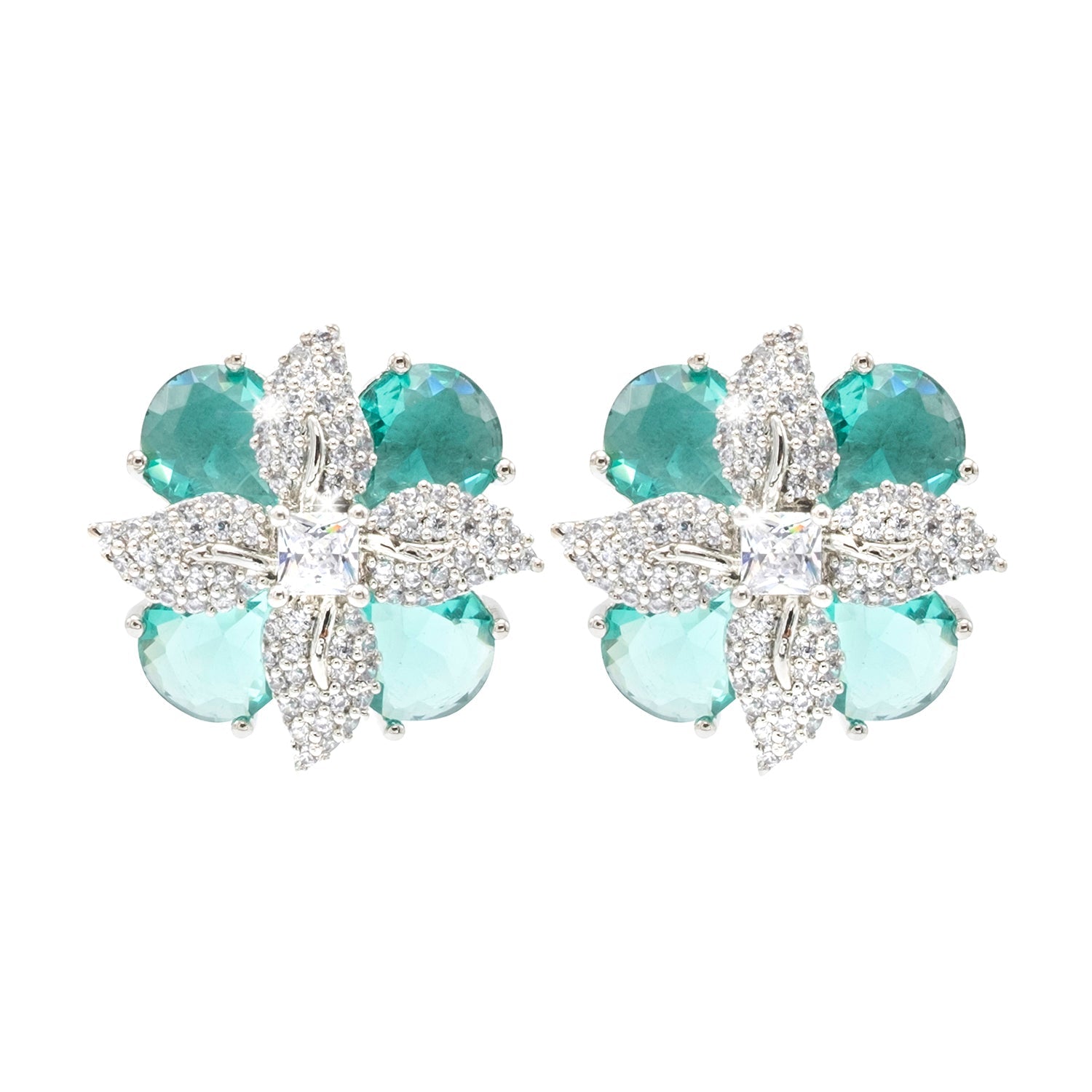 Western Design, CZ, Zirconia, Crystals, Rhodium Silver Plated Stud Bridal Earrings for Women -(SJE_308_S_G)