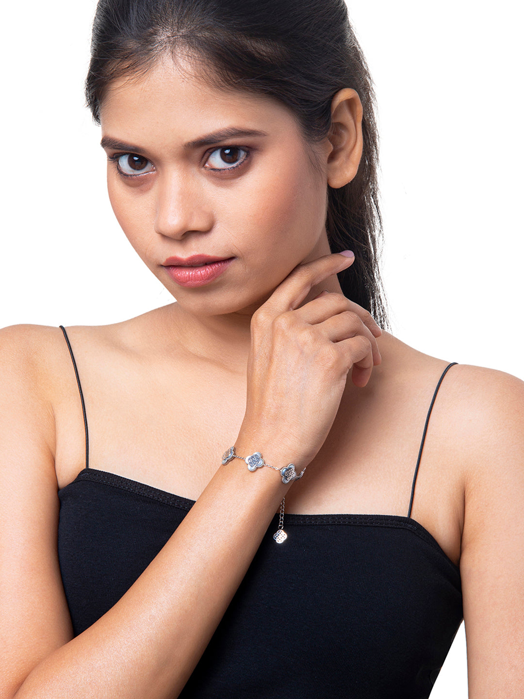 White Plated Long Chain Alhambra Clover Bracelet For Girls, Teens & Women MD_3285_W